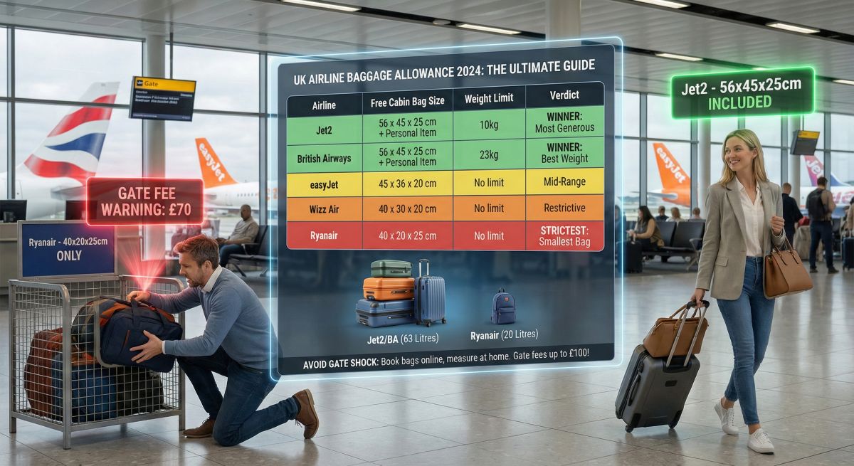 Every UK airline baggage allowance is different, and the rules change regularly. I have lost count of the times I have seen passengers caught out at the gate, paying £50+ because their bag was 2cm too wide or they assumed their ticket included a cabin bag when it did not.
